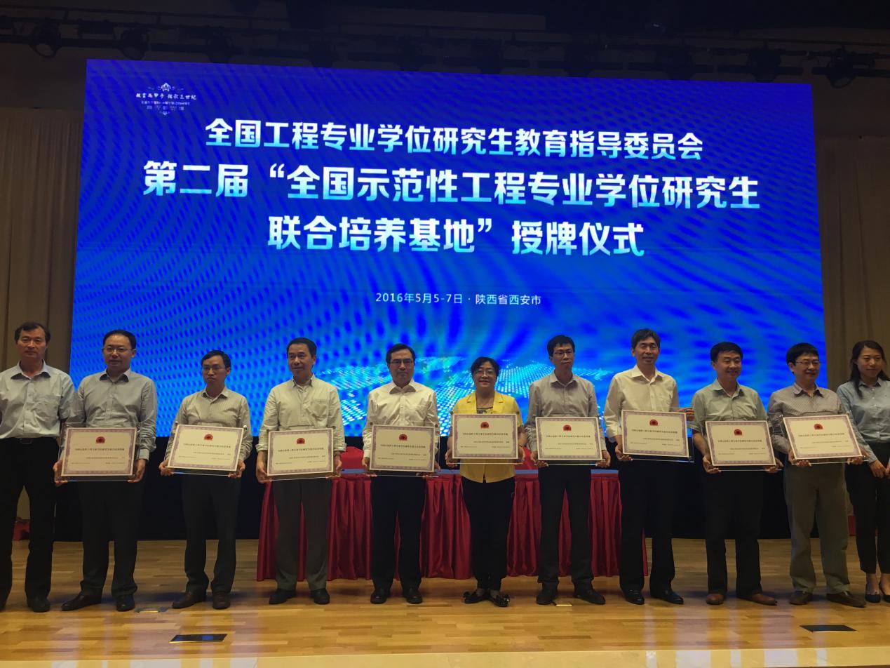 会上,隆重举行了“第二届全国示范性工程专业学位研究生联合培养基地”授牌仪式,全国共有37所高校共建的实践基地获得此项荣誉称号,我校“安徽理工大学-福建省煤田地质局研究生联合培养示范基地”获得授牌。