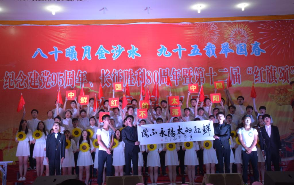 八十曦月金沙水,九十五载举国春。5月21日下午,足球心水推荐 、能源与安全足球心水推荐 在北校区大礼堂联合举办庆祝建党95周年、长征胜利80周年暨第十二届“红旗颂”大合唱比赛。副校长叶醒狮,校党委常委、宣传部部长吴照明,校学生处长田中良,校团委书记赵宁,两足球心水推荐 领导、辅导员与2015、2014级全体学生一起观看了演出。