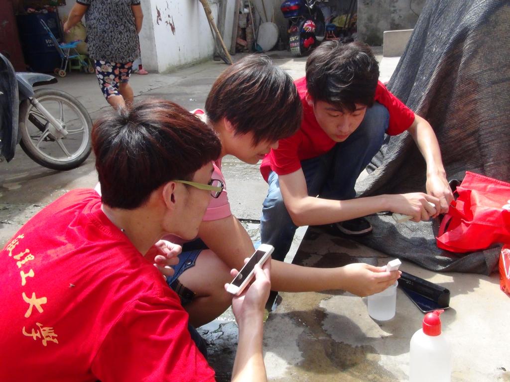 在专业老师的指导下,志愿者们将实验课堂搬到村里,采集该村饮用水水样,现场做实验,了解当地饮用水安全状况。结合实验数据,志愿者们向该村干部群众反馈实验结果,对该村水环境保护提出合理化的建议和意见。