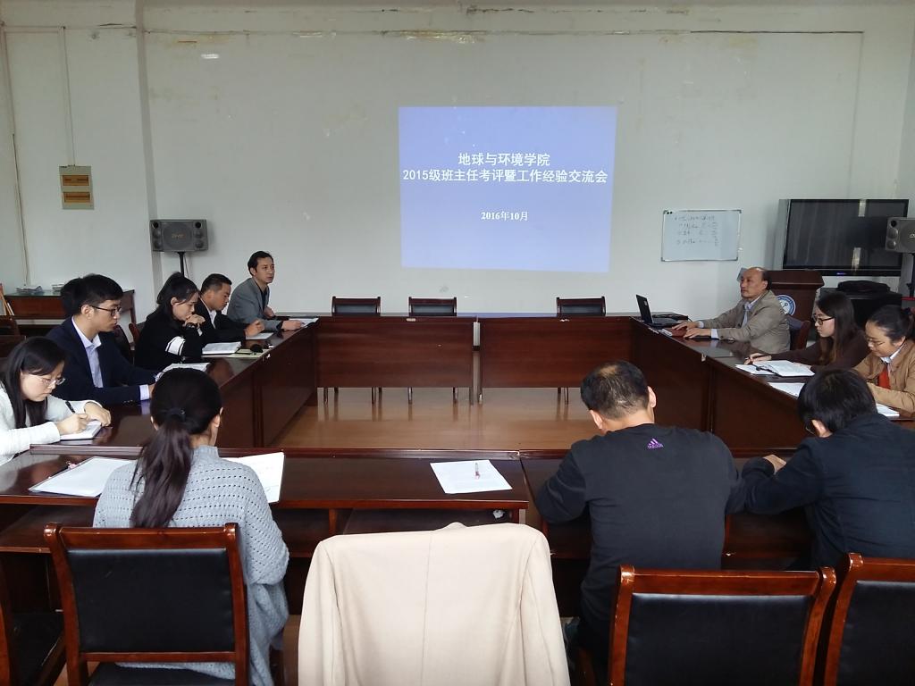 10月18日下午,足球心水推荐 在足球心水推荐 201会议室举行2015级班主任考核汇报暨工作交流会。足球心水推荐 党委书记盛鹏飞、副书记侯辉、各年级辅导员及2015级和2016级班主任参加会议。会议由侯辉主持。