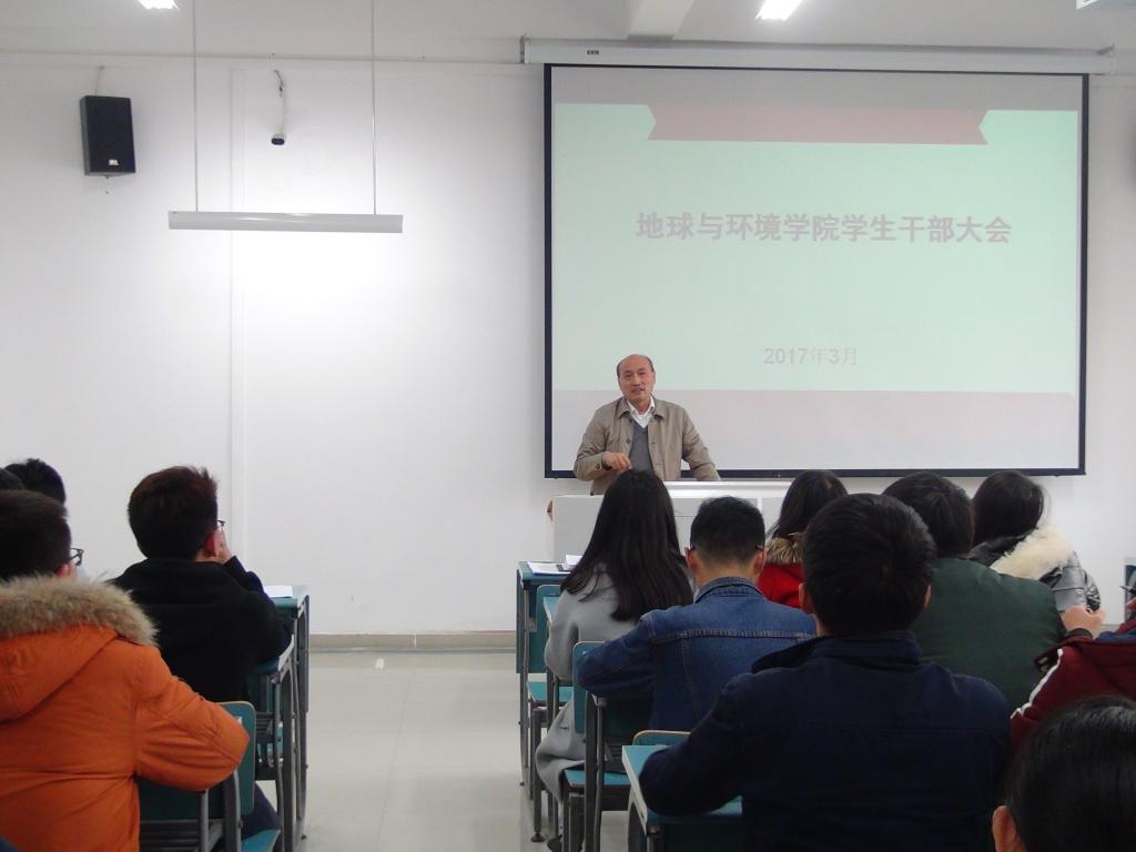 3月17日下午,足球心水推荐 在足球心水推荐 楼202教室召开新学期各年级学生干部大会。足球心水推荐 党委书记盛鹏飞出席并讲话,足球心水推荐 党委副书记侯辉,全体辅导员,学生党支部委员与四个年级的班级干部90余人参加会议。