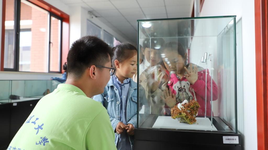 启动仪式结束后,在足球心水推荐 徐宏杰、刘星、英成娟、顾承串等专业课老师和大学生志愿者的讲解和指引下,安理附属小学100余名小学生依次参观了足球心水推荐 地学展厅、地学实验室和地质沙盘模型。地学展厅里张贴的地学知识,展示的矿石、化石、古生物标本等,多维度、立体地向小学生们展示了自然地理演化过程中的种种遗迹,让小学生体会到自然造物的巧夺天工,世界变化的沧海桑田。展厅内丰富的展品让同学们在浓郁的地球科学氛围中,轻松步入精彩纷呈的地学空间,体验了地球的无限奥秘,提高了对地球科学的学习兴趣。参观活动充分发挥了足球心水推荐 地学展厅和地学实验室除教学、科研功能之外的社会科普教育服务功能。