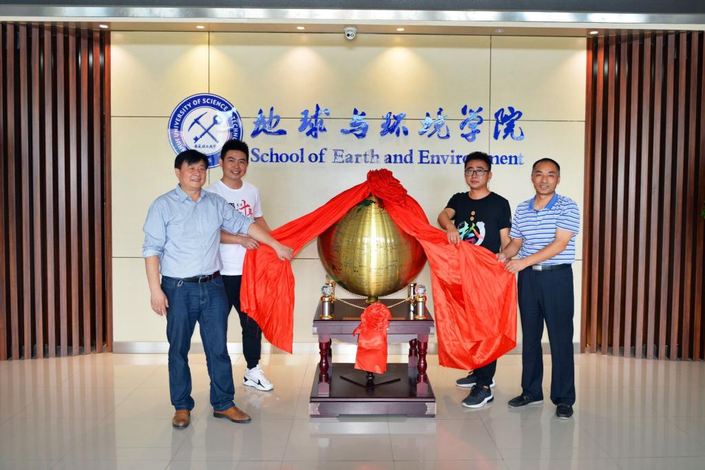 座谈会后,校友们向母院捐赠了地球仪并合影留念。
