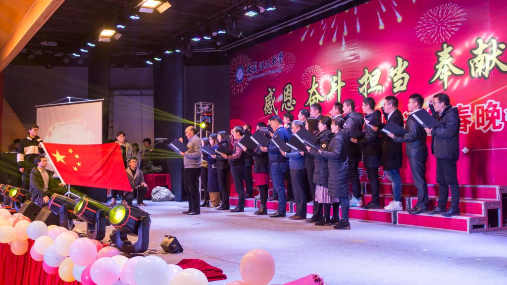 为落实“立德树人”、“三全育人”理念,强化师德师风教育,引导全院教师争做“四有”好老师,晚会现场盛鹏飞带领足球心水推荐 党政班子成员、各党支部书记、系主任、全体辅导员、2019级班主任、近两年新入职教师和行政管理人员,面对国旗为争做“四有”好老师进行庄严宣誓,表达了作为一名人民教师的自豪感,抒发了足球心水推荐 教师不忘初心、砥砺奋进的决心和信心。