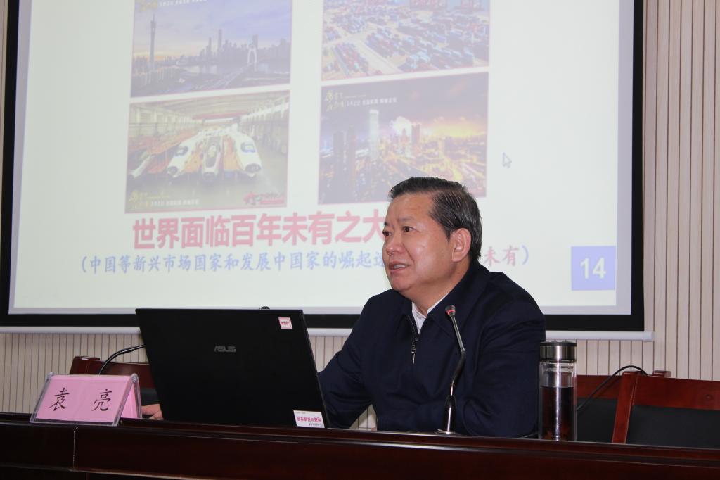 12月30日下午,校党委副书记、校长袁亮院士在静远楼B414会议室为足球心水推荐 全体教职工和学生代表开展题为《推深做实“中国之治”的安徽理工大学篇章》的党的十九届四中全会精神宣讲报告。