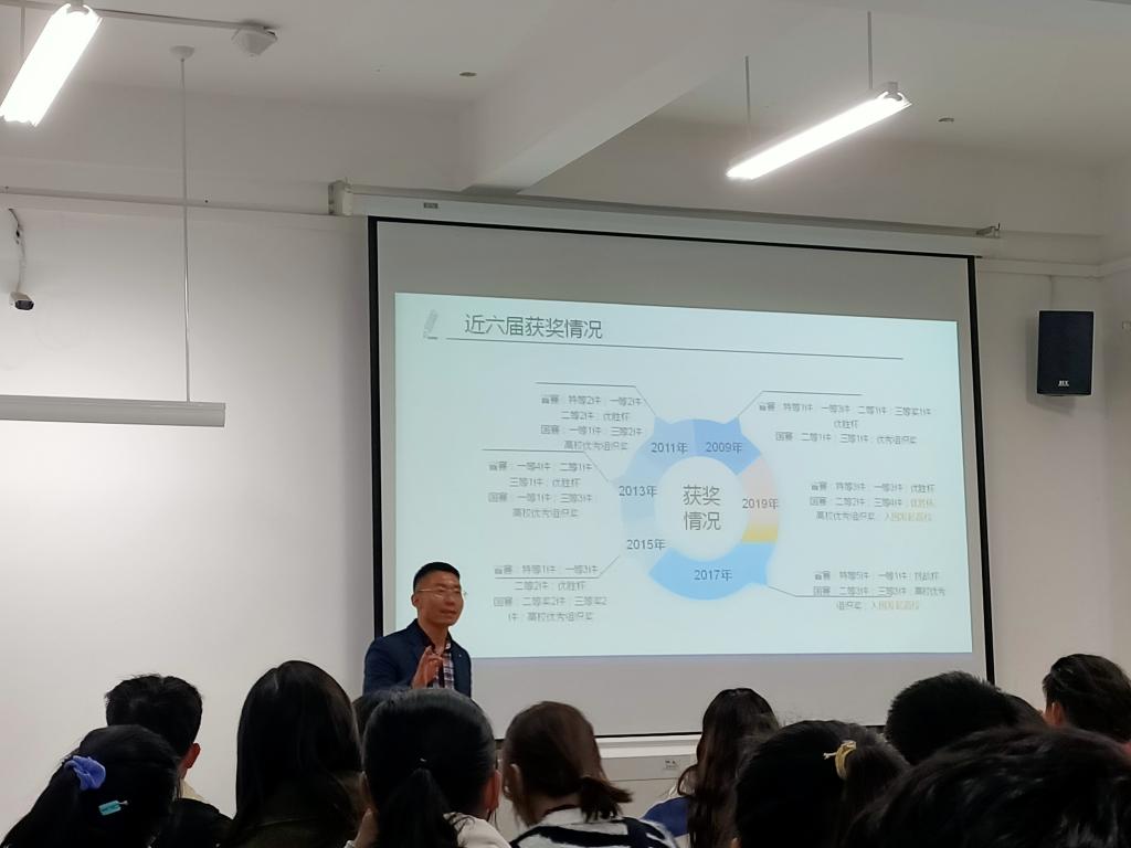 会上,唐克老师以基础教育重要性的视频短片为引入,详细介绍了“挑战杯”赛事的基本信息,阐述了“挑战杯”的创新性、先进性和实践性等特点,列举了足球心水推荐 、学校学生在往届“挑战杯”竞赛中取得的优异成绩。其次,他在鼓励同学们多研究社会热点、痛点问题的同时,对参赛流程、参赛注意事项、团队的组建、立意创新等进行了说明。最后,他为大家详细介绍了与足球心水推荐 专业较为相关的科技与发明制造类比赛项目,具体讲解了包括选题、团队、评分标准、比赛流程等相关事项,并与同学们分享了往届学生的参赛事迹,鼓励同学们积极参与今年的挑战杯大赛。