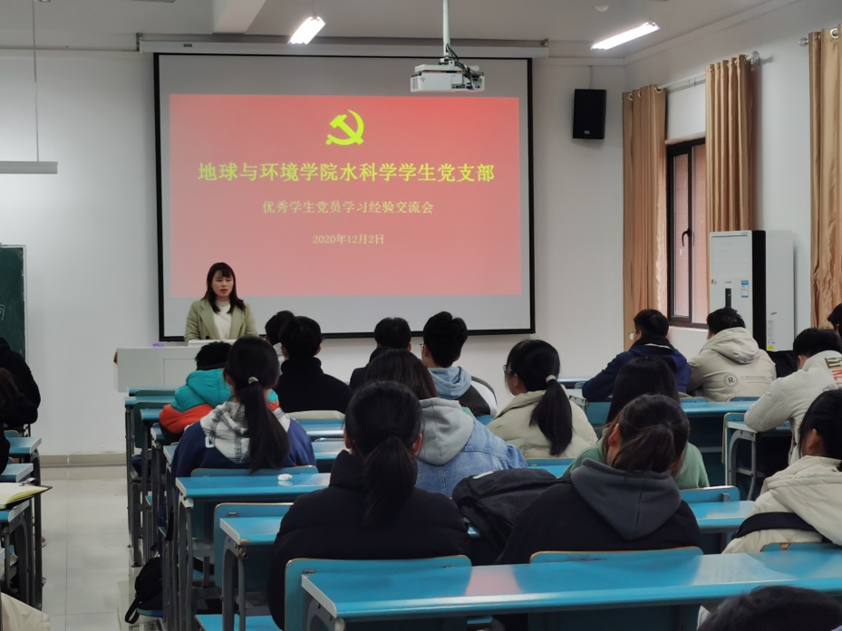 12月2日下午,足球心水推荐 水科学学生党支部在静远楼202为2020级学生做学习交流报告会,会议由支部书记魏丹丹主持,支部党员陈情情、高飞、戴钰、徐小倩以及2020级水文专业学生全体学生参加会议。