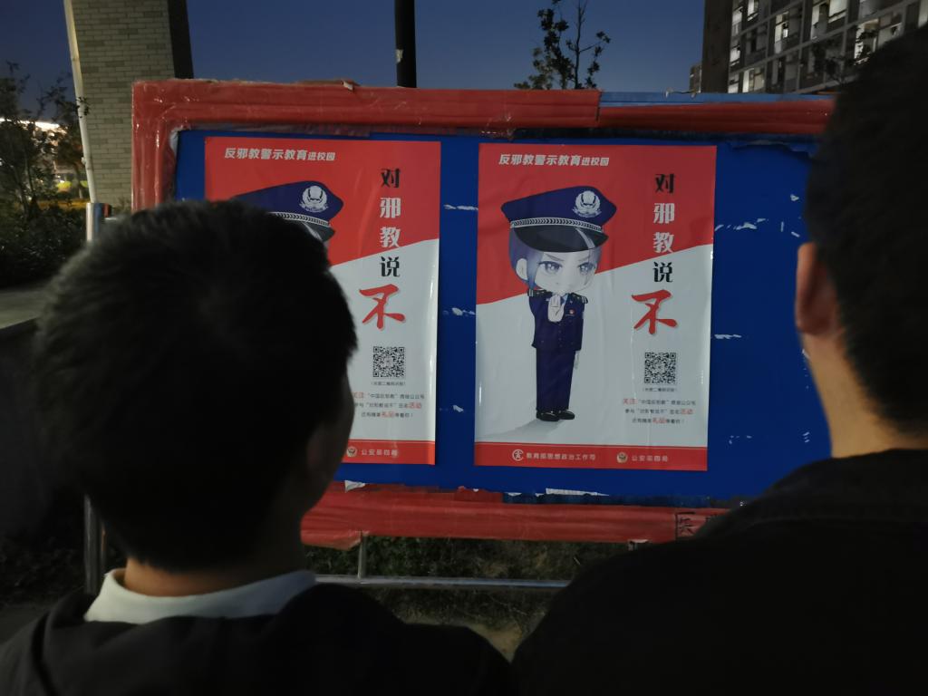 学生观看反邪教警示宣传展板(摄影:冯宇)