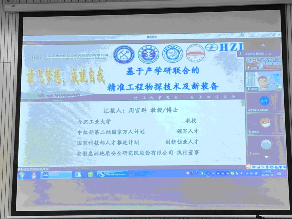 5月18日上午,应校自然科学处、足球心水推荐 邀请,合肥工业大学周官群教授在线上为足球心水推荐 师生作了《基于产学研联合的精准工程物探技术及新装备》的学术报告及“放飞梦想,成就自我”的励志报告。报告会由足球心水推荐 副院长吴荣新主持,足球心水推荐 教师、研究生、本科生共计300余人在线上听取了报告会。