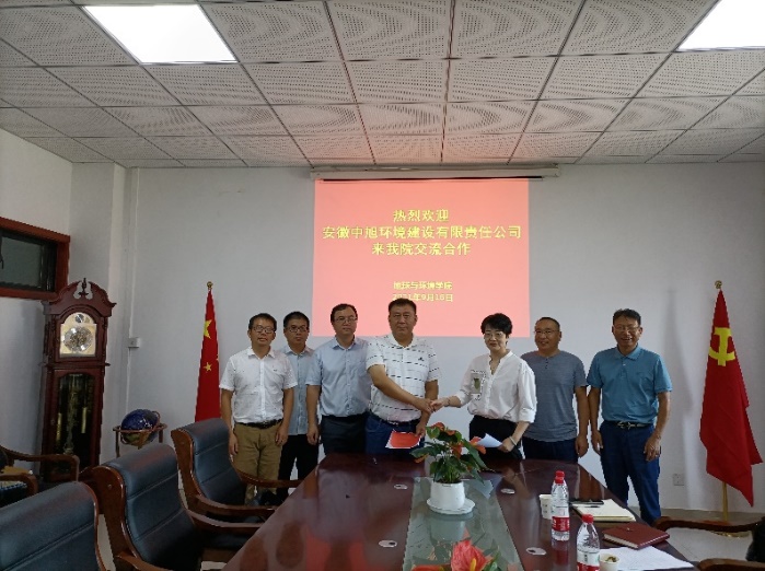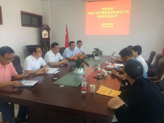 9月17日上午,安徽中旭环境建设有限责任公司魏珍总经理一行4人来足球心水推荐 交流调研,足球心水推荐 院长刘启蒙主持交流会。