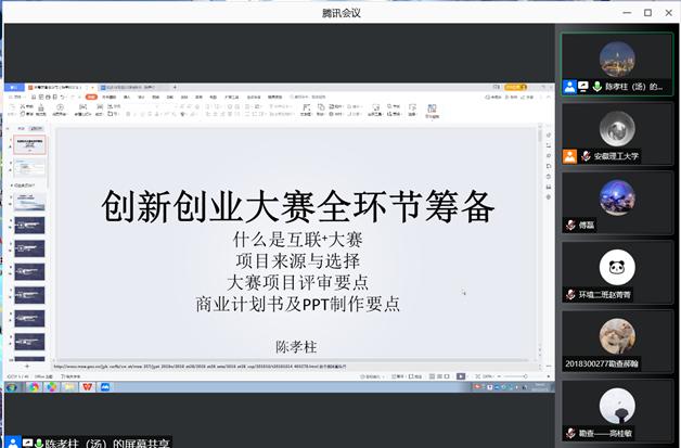 为进一步提高大学生创新创业能力,指导参赛同学在“互联网+”大学生创新创业大赛取得更好的成绩,3月11日,足球心水推荐 邀请土木建筑足球心水推荐 陈孝柱老师通过腾讯会议的线上方式对我院师生进行培训指导,足球心水推荐 学科竞赛负责人、团委副书记张士林,各年级辅导员以及200余名学生代表参加此次培训指导会。会议由张士林主持。