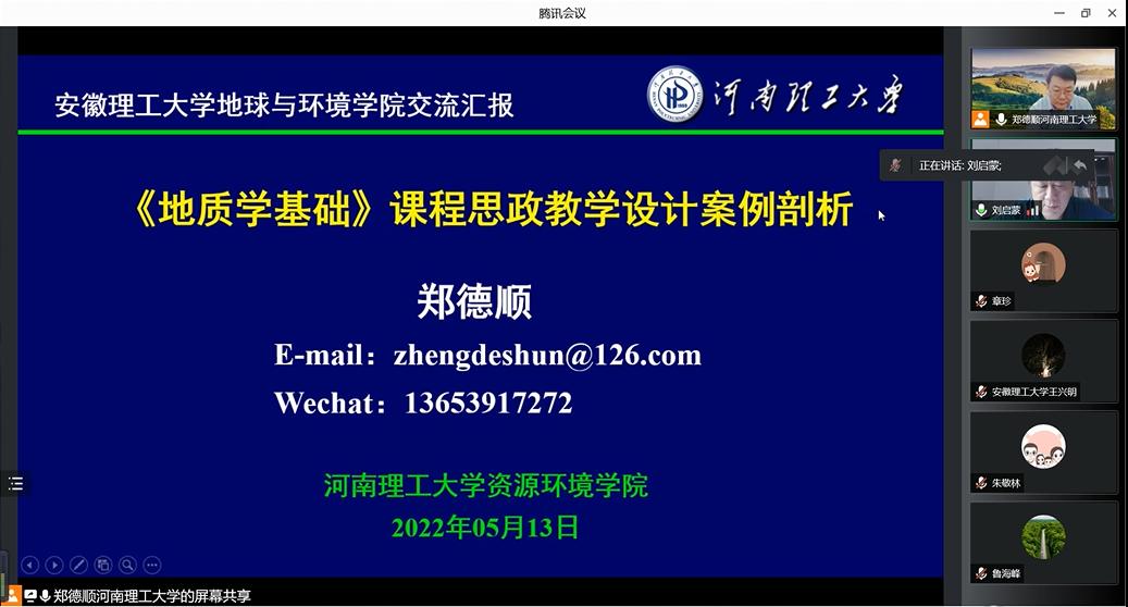 5月13日上午,河南理工大学资源环境足球心水推荐 副院长郑德顺教授应足球心水推荐 邀请,做了“《地质学基础》课程思政教学设计案例剖析”的线上辅导报告。足球心水推荐 近50位青年教师参与了观摩和研讨,院长刘启蒙主持报告会。