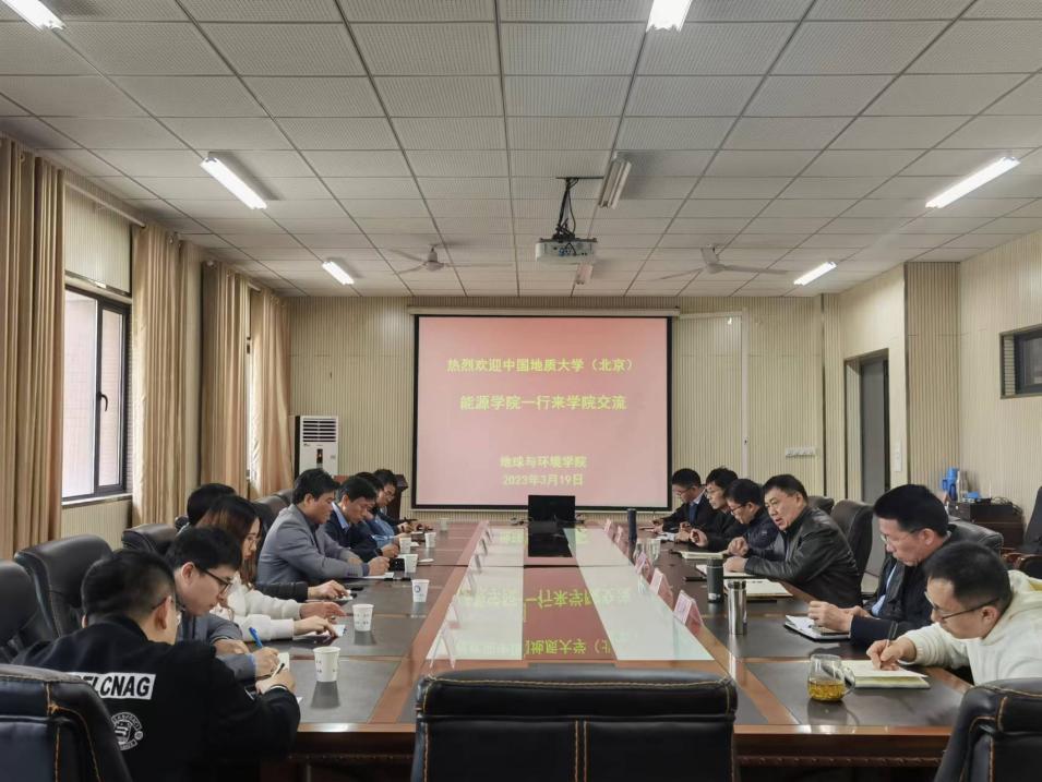 交流会在静远楼B414会议室举行,由院长刘启蒙主持。刘启蒙对中国地质大学(北京)能源足球心水推荐 一行的到访表示热烈欢迎,感谢中国地质大学(北京)在学科评估、人才培养等方面的支持,详细介绍了足球心水推荐 近年来在学科专业建设、科学研究、人才培养及人才引进等方面取得的成绩。他表示中国地质大学(北京)能源足球心水推荐 师资力量雄厚、科研成果丰硕,在非常规能源领域独具特色,在行业内拥有重要影响力,足球心水推荐 正处在新发展阶段,在诸多方面都需要向中国地质大学(北京)等兄弟院校学习,特别是在资源勘查工程新专业建设和青年人才的培养方面。