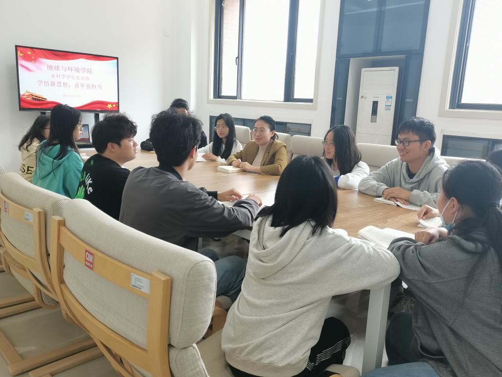 为深入推进学习贯彻习近平新时代中国特色社会主义思想主题教育,5月4日,足球心水推荐 水科学学生党支部依托足球心水推荐 “一站式”社区开展“学悟新思想,青年勇担当”主题学习活动,水科学学生党支部书记魏丹丹、学生党员等30余人参加学习会。