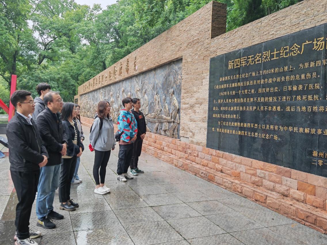 在滁州新四军无名烈士纪念广场,大家通过观看墙上的一幅幅浮雕,重温了新四军战士的革命历程,深刻感受到他们前赴后继、艰苦奋斗、不怕流血、不怕牺牲的意志品质。师生党员们深刻认识到,我们今日的和平盛世,正是因为有无数革命先烈们抛头颅洒热血所创造,正是他们的无私奉献,才能有我们今天的美好生活。