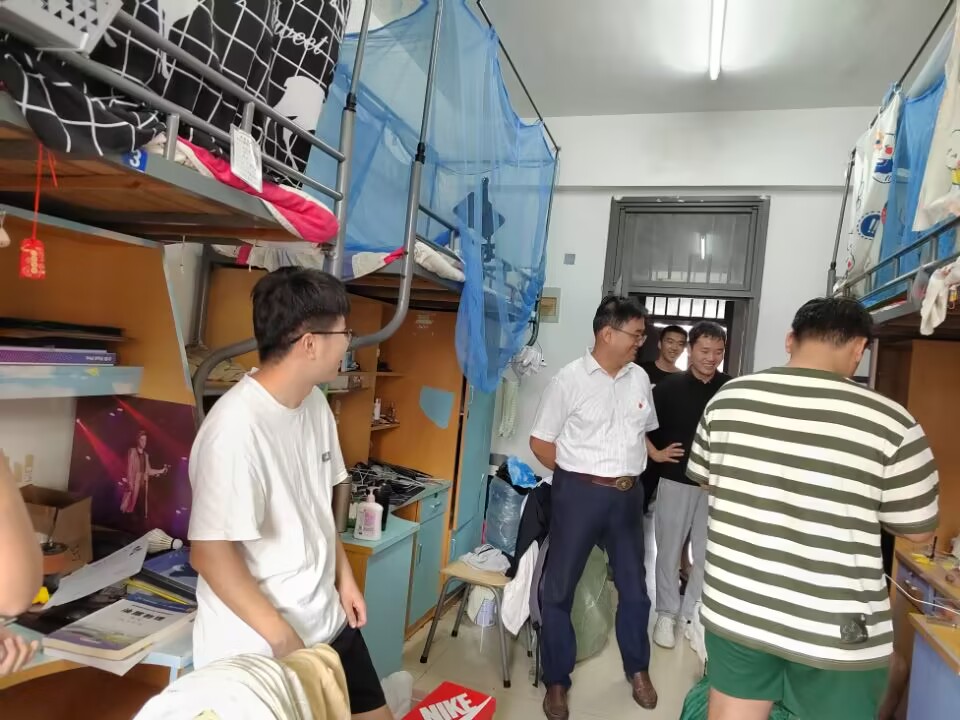 6月15日晚,足球心水推荐 领导班子,毕业生辅导员老师一行前往毕业班宿舍走访,为即将离校的毕业生送去最真挚的关怀与祝福,话别毕业生。