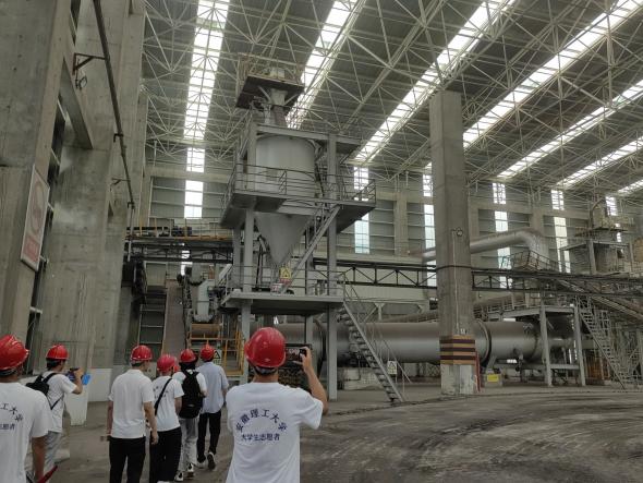 实践团首先前往位于潘集区的国家级大宗煤电固废物综合利用产业集聚基地。在基地,团队成员实地参观了煤系轻质高强轻细集料系列产品的生产过程。该系列产品是由东辰集团煤矸石研究所研发的,一种以煤矸石为原料,经破碎、预热、烧胀、冷却、分级、包装而生产的煤矸石陶粒。通过与工作人员的深入交流,团队成员了解到煤矸石陶粒具有轻质、保温、抗渗、隔音、耐酸碱腐蚀等性能,是一种优质绿色建筑轻骨料,能够完全替代建筑混凝土中的石子和卵石,可以广泛应用于桥面铺装、装配式建筑、3D打印、海洋浮岛工程、国防军事等诸多领域。