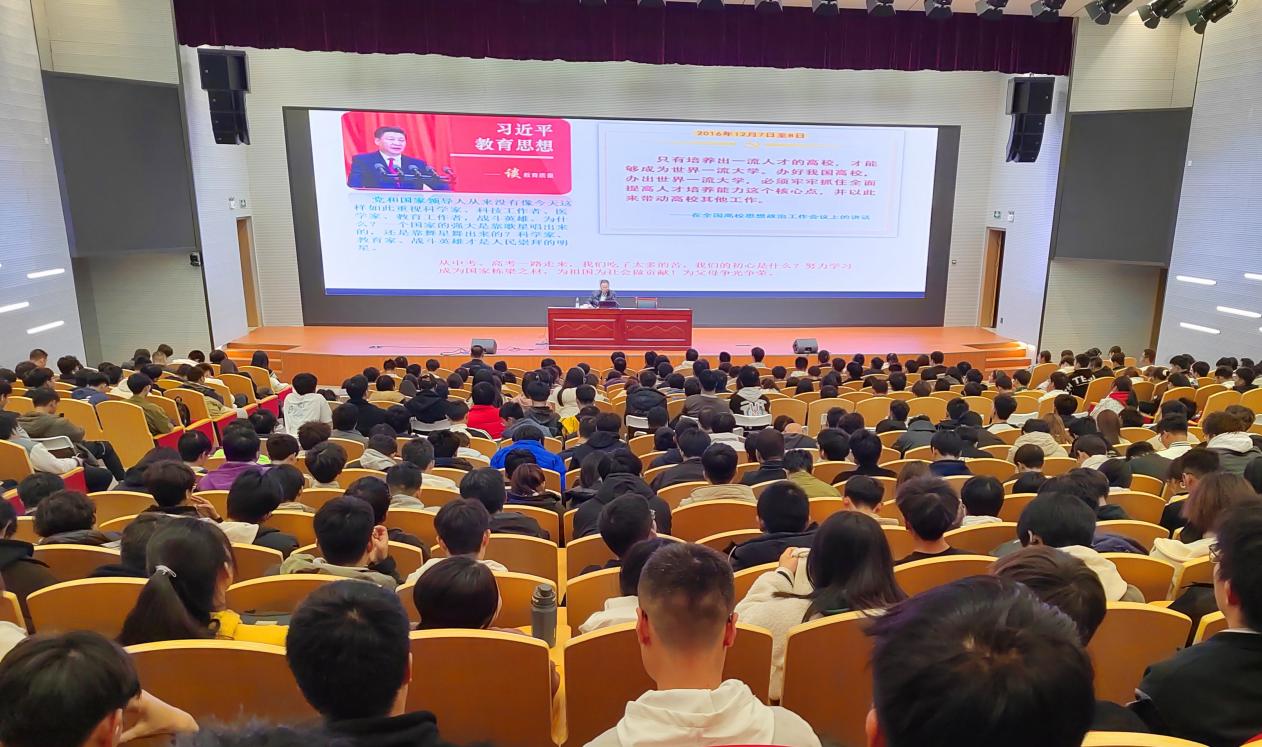 为深入学习贯彻习近平新时代中国特色社会主义思想,大力弘扬科学家精神,引导学生厚植家国情怀,投身强国伟业,11月20日晚,足球心水推荐 邀请教育部高等学校地质类专业教学指导委员会副主任刘玉强教授在舜耕会堂作题为“不忘初心,努力学习,实现理想”的励志报告会。报告会由足球心水推荐 党委书记陈楠主持,2023级485名新生和辅导员参加了报告会。