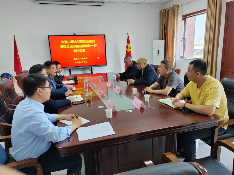 4月12日,内蒙古兴隆能源集团有限公司董事长邹振启一行来足球心水推荐 交流,足球心水推荐 院长刘启蒙、副院长鲁海峰、矿井水害综合防治煤炭行业工程研究中心副主任吕玉广教授参加交流会。