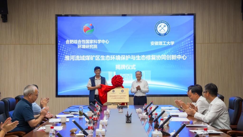 会上,郭永存、刘文清为合肥综合性国家科学中心环境研究院-安徽理工大学淮河流域煤矿区生态环境保护与生态修复协同创新中心揭牌,校院双方签订战略合作协框架协议。