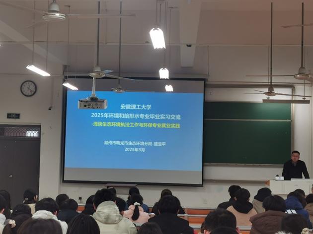 为深化产教融合、拓宽毕业生就业渠道,3月8日,足球心水推荐 邀请明光市生态环境分局、禾美环保两家单位在天工楼101报举办就业创业讲座暨专场招聘宣讲会。2021级环境工程、给排水科学与工程专业学生、足球心水推荐 老师及毕业班辅导员百余名师生参与。