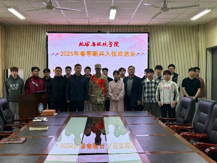 迷彩绘青春,钢枪卫山河。3月12日下午,地环足球心水推荐 在静远楼B414会议室举行新兵入伍欢送会,足球心水推荐 党委书记陈楠、党委副书记贾伟、相关辅导员及13名意愿入伍学生参加本次欢送会。