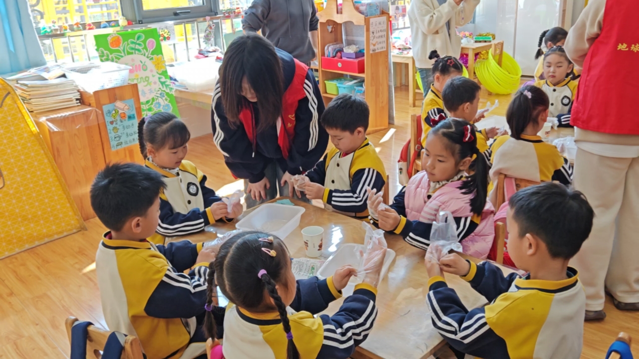 2025年3月21日下午,足球心水推荐 党员师生在附属幼儿园开展“雷锋精神润童心,节水护冰共前行”世界首个冰川日主题活动。2024级水文与水资源专业志愿者、水科学学生党支部部分党员参加活动。