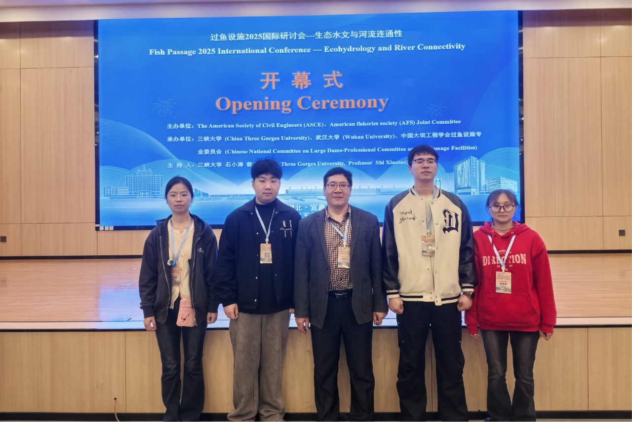 戎贵文教授受邀在主会场作了题为“Effectof Different Head-Drop Heightson Fishway Pool Hydrodynamics”的学术报告。硕士研究生刘舰宇、马腾宇和张杨燕在分会场分别作题为“Influence of Different Length-to-Width Ratios on Hydraulic Characteristics of Multi-Level Pool-Type Fishways”“Real-time Recognition Technology for Fish Passage Targets Based on YOLOv12”“Effect of Combined Baffles on Hydraulic Characteristics at Drop Structures in Fishways”的学术报告,展现了我校在生态文明和鱼类洄游连通领域的最新研究成果。与会师生与来自不同国家的专家学者进行了的交流,引起与会专家的广泛关注和热烈讨论。戎贵文教授荣获“优秀报告奖”。