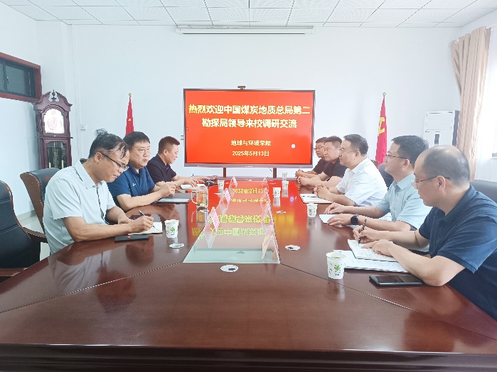 5月13日下午,中国煤炭地质总局第二勘探局党委委员、纪委书记左德松一行5人来足球心水推荐 调研交流。座谈会由院长刘启蒙主持,副院长张世文、地质与勘查工程系吕玉广教授参加座谈会。