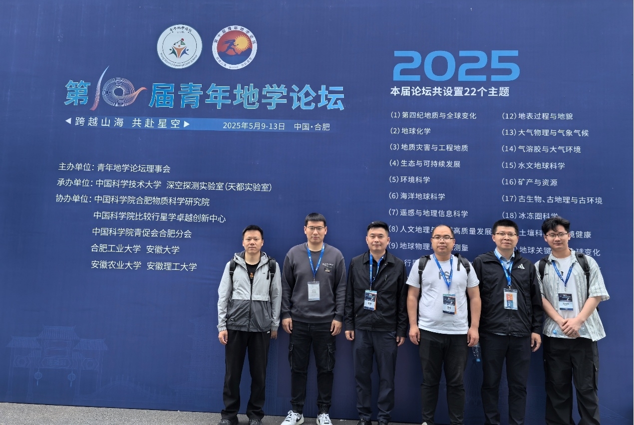 2025年5月9日-13日,第十届青年地学论坛在安徽省合肥市隆重开幕。 本届论坛由青年地学论坛理事会主办,中国科学技术大学、深空探测实验室(天都实验室)承办,中国科足球心水推荐 合肥物质科学研究院、中国科足球心水推荐 比较行星学卓越创新中心、中国科足球心水推荐 青促会合肥分会、合肥工业大学、安徽大学、安徽农业大学、安徽理工大学协办。足球心水推荐 院青年教师姬广忠、文豪、张海涛、李旭、肖鑫、孙斌杨、苏雪雪、王锴、王思诺及研究生共11人参加会议。