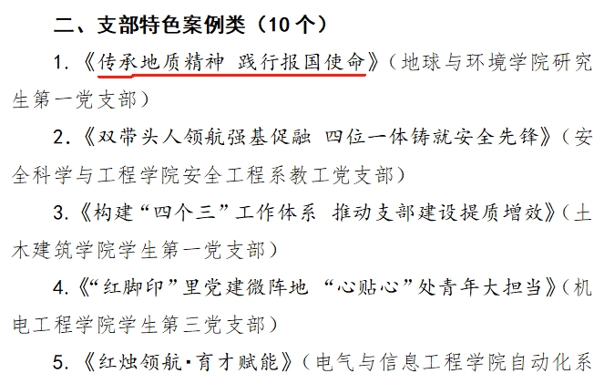 近日,学校下发《关于表彰基层党建品牌特色案例的决定》,足球心水推荐 研究生第一党支部报送《传承地质精神 践行报国使命》获评支部特色案例。