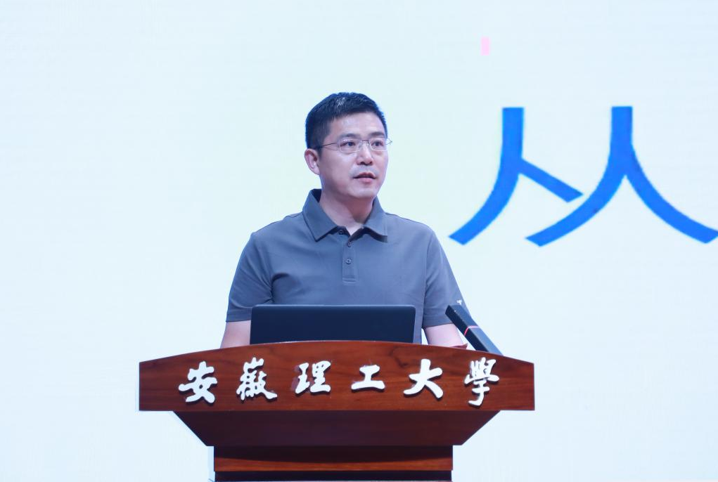 捐赠仪式中,校友王光明以《从安理出发,为母校归来》为题进行致辞。他说,母校“团结、奋进、博学、奉献”的校训,及恩师所传“脚踏实地、勘探求真”的精神,始终深深镌刻于精神底色之中。这不仅为个人人生航向锚定坚实基石,更成为创业征途上的精神航标。此次捐赠,正是以实际行动践行反哺母校的深厚情感,期待能够为母校理工医交叉融合与科研教学事业贡献一份力量。校友魏广庆以《给矿山植入光纤神经》为题进行致辞。他分享创业历程中的艰辛与收获,饱含了对母校的感恩之情。他介绍与母校携手在覆岩变形监测、巷道安全防控、井筒结构运维、深地多场信息感知等领域的协同攻关成果,阐述当前聚焦微振与地层成像、分布式地应力传感器研发应用、井下机电设备故障诊断等核心技术方向的突破进展。他表示,将深化校企协同创新,联合苏州校友以实干践行反哺之责,助力母校“双一流”创建。