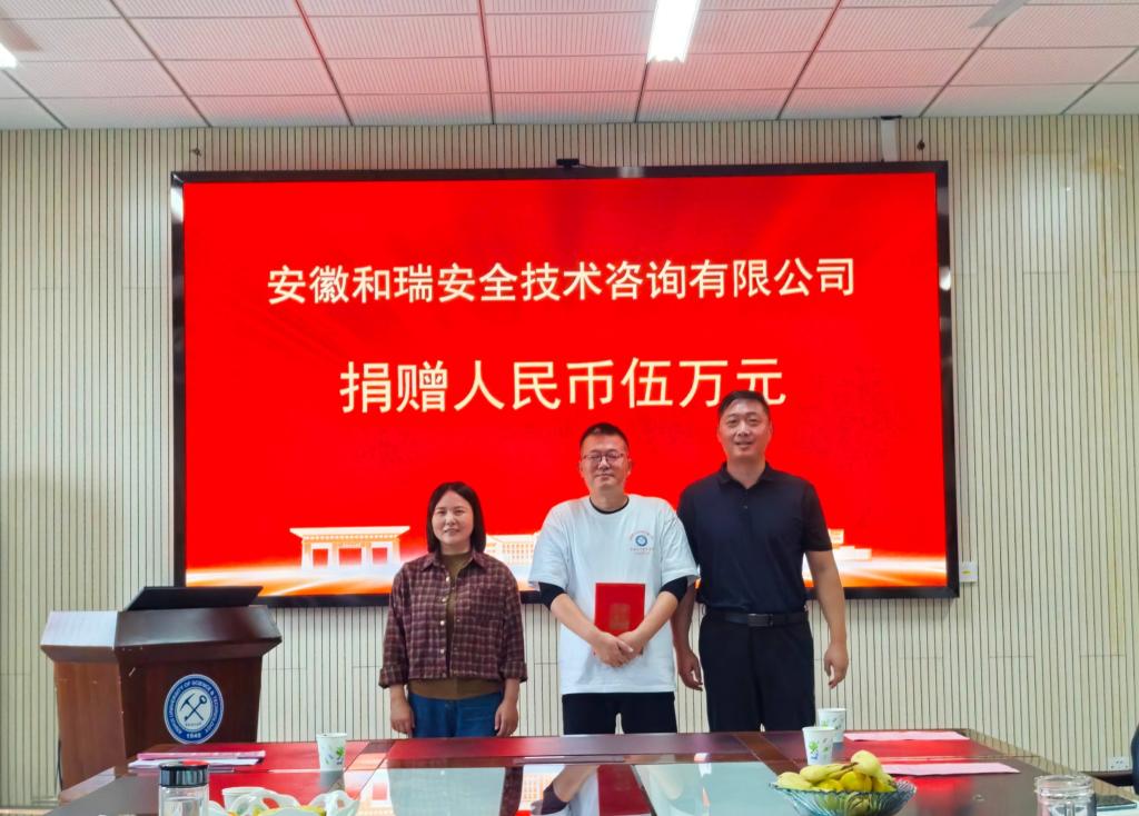 安徽和瑞安全技术咨询有限公司费广胜和张金凤校友伉俪捐赠(摄影:工作人员)