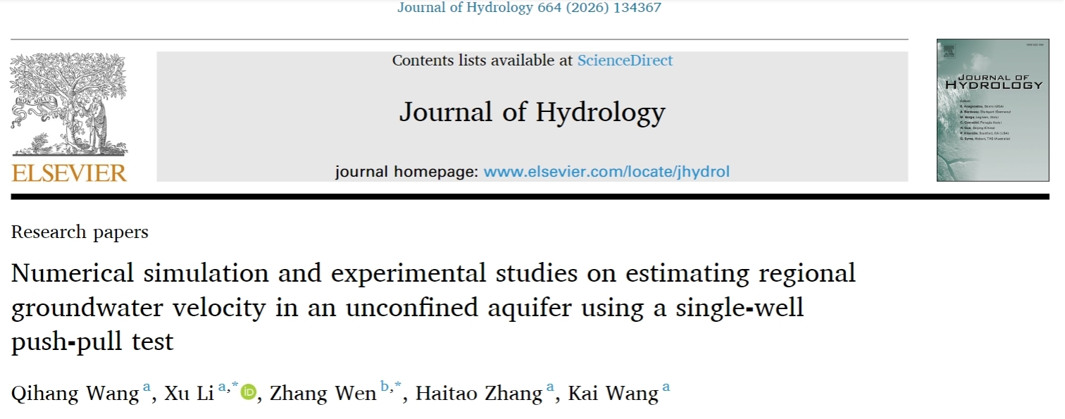 近日,足球心水推荐 博士生汪启航在水文地质领域顶级期刊《Journal of Hydrology》上发表了题为“Numerical simulation and experimental studies on estimating regional groundwater velocity in an unconfined aquifer using a single⁃well push⁃pull test”的研究论文,足球心水推荐 李旭副教授为通讯作者,安徽理工大学为论文第一完成单位。此研究得到国家自然科学基金面上项目、国家自然科学基金青年项目和安徽省自然科学基金青年项目的资助。