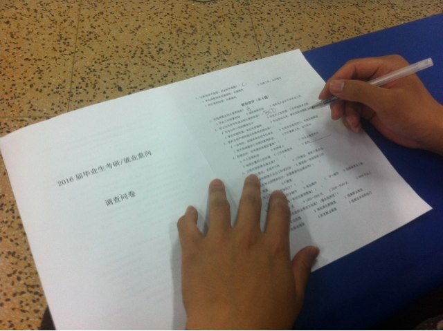 调研活动主要以学生填写足球心水推荐 《2016届毕业生考研/就业意向调查问卷》的形式展开,学生根据自己的专业前景、职业发展规划等因素,分别对考研动机、考研学校选择、择业影响因素、月薪期望值等18个问题进行回答。同时,同学们还围绕考研和就业工作发表自己的建议,考研的同学希望足球心水推荐 提供更好的学习环境、自习条件,定期开展考研辅导讲座等;就业的同学希望学校、足球心水推荐 加强现阶段就业工作重点和专业择业方向的指导,帮助学生摆正就业心态。