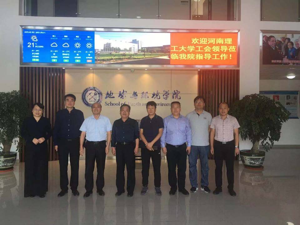 2019年9月24日,河南理工大学校工会主席田留轩一行3人到安徽理工大学校工会足球心水推荐 分工会调研,校工会主席李广田、足球心水推荐 党委书记盛鹏飞等陪同。