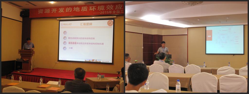 会议期间,我校师生与与会专家学者展开了深入交流。吴基文教授在《资源开发的地质环境效应》分会场作了题为“煤层底板采动效应的岩体结构控制机理”的学术报告,沈书豪博士生在《资源枯竭型城市工程地质》分会场作了题为《基于岩性—结构的煤层底板岩体结构类型划分》的学术报告,受到与会人员的关注。