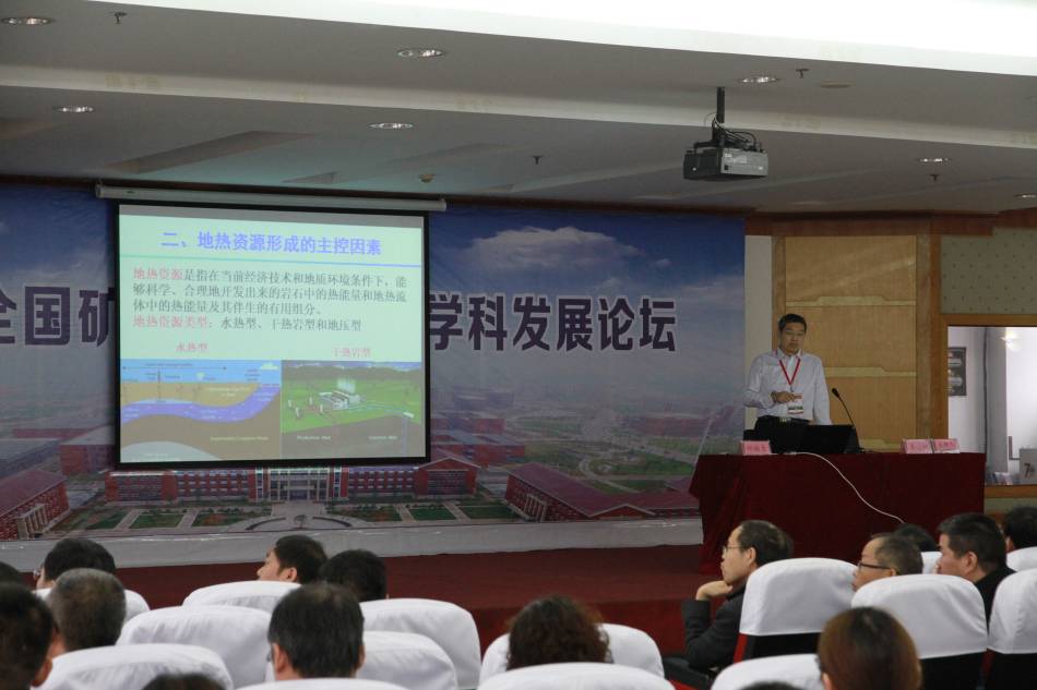 11月12日上午,受校科技产业处和足球心水推荐 的邀请,国家杰出青年基金获得者、中国石油大学(北京)邱楠生教授在校本部九楼学术报告厅作了题为《我国沉积盆地地热资源开发利用现状和发展趋势》的学术报告,报告会由科技产业处处长华心祝教授主持,第五届全国矿业类高校地质学科发展论坛代表、学校教师及各年级学生代表300余人聆听了报告。