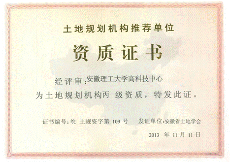 【1】土地规划类“土质规划机构”丙级资质(2013年恢复,每年7月年审) |